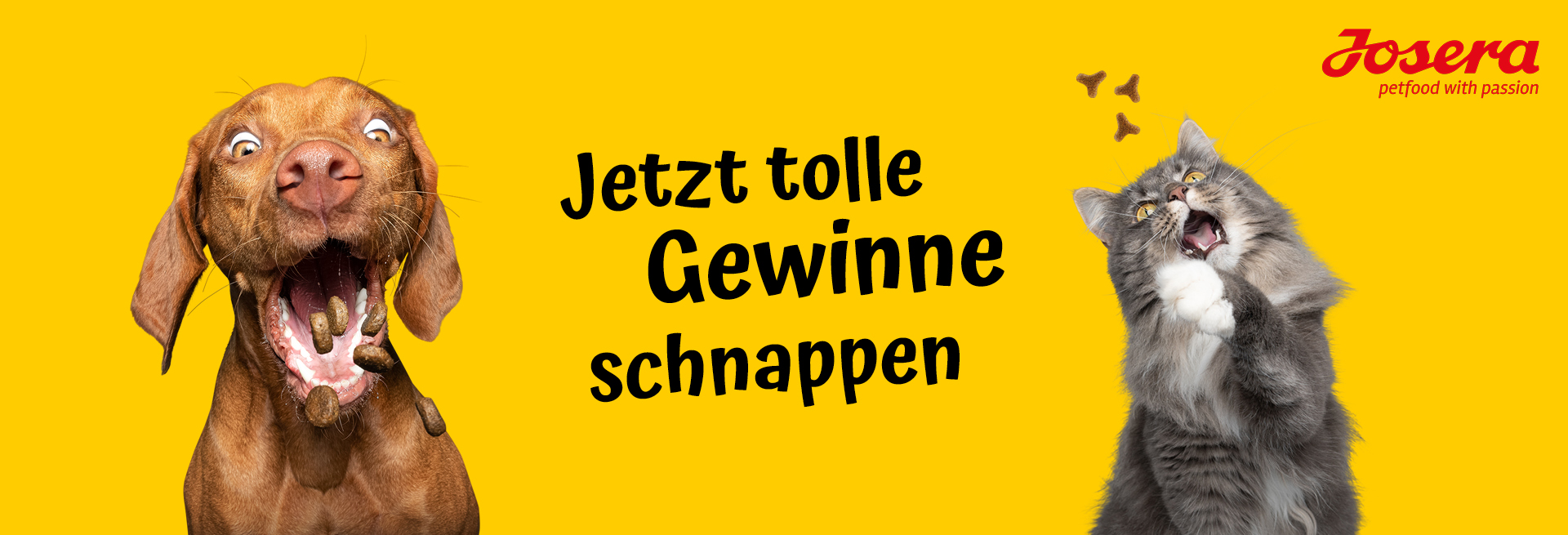 Wir bei Josera wollen nicht nur Deinen Vierbeiner mit dem Lieblingsfutter überraschen, sondern auch Dich mit tollen Gewinnspielen. Ob ein Futtervorrat, Spielzeuge zum Verlieben oder praktische Gadgets fürs Leben mit Tier – bei den Preisen lohnt es sich, dabei zu sein. Wir drücken die Pfoten.